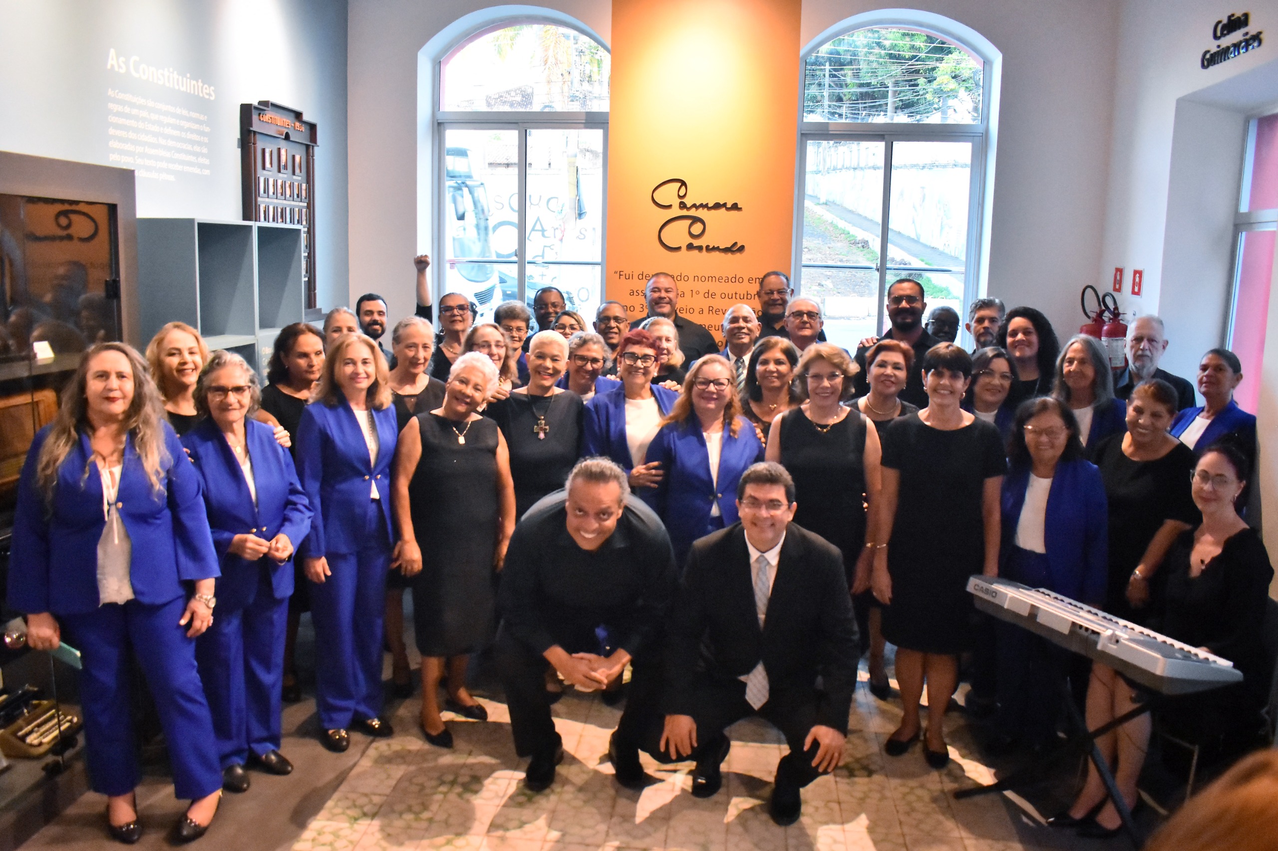 O Memorial do Legislativo Potiguar recebeu, na tarde desta quarta-feira (15), o Coral do Senado Federal, referência em música no Brasil. A apresentação foi uma pequena amostra do concerto “Missa em Favor do Mundo”, que o grupo fará nesta quinta-feira (16), às 19h30, no Teatro Alberto Maranhão, em parceria com a Filarmônica da UFRN. A obra, composta pela maestrina Glicínia Mendes, que liderou o coral por 27 anos, foi escrita especialmente para coro e orquestra, abordando temas relacionados à humanidade, esperança e empatia.