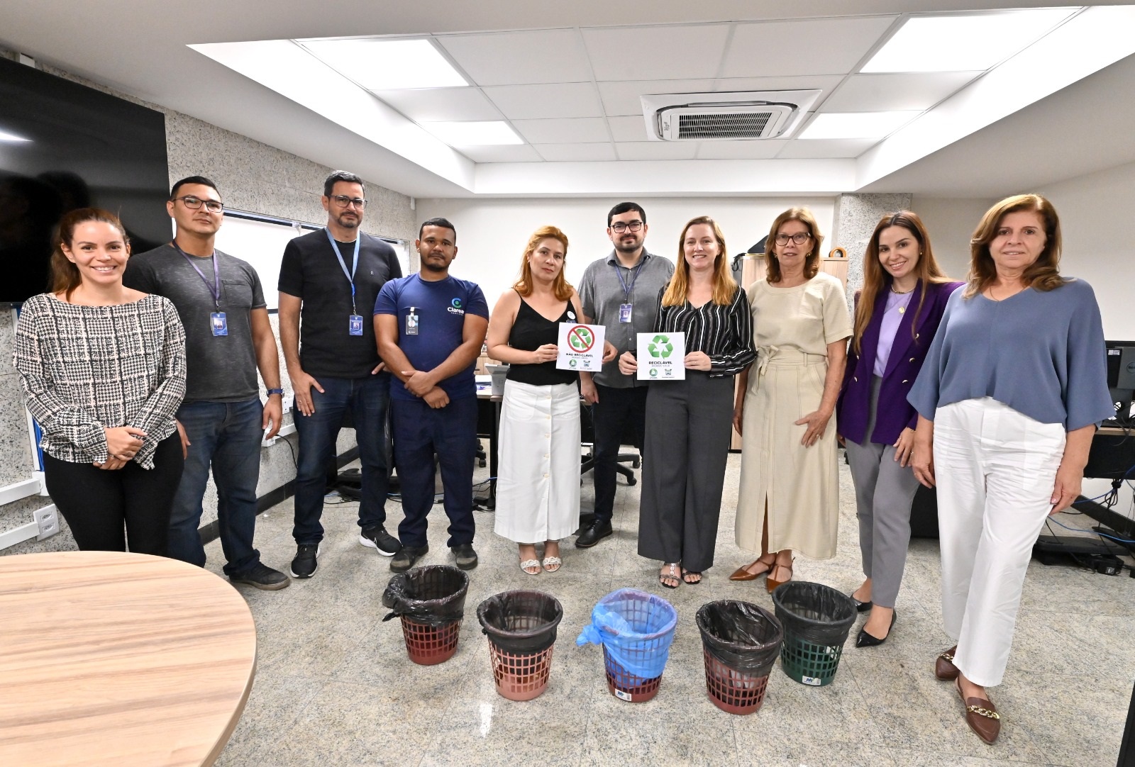 Durante as visitas, a Comissão explica a importância da Coleta Seletiva Solidária e os procedimentos adequados para o descarte, garantindo que os materiais recicláveis sejam encaminhados corretamente às cooperativas habilitadas.