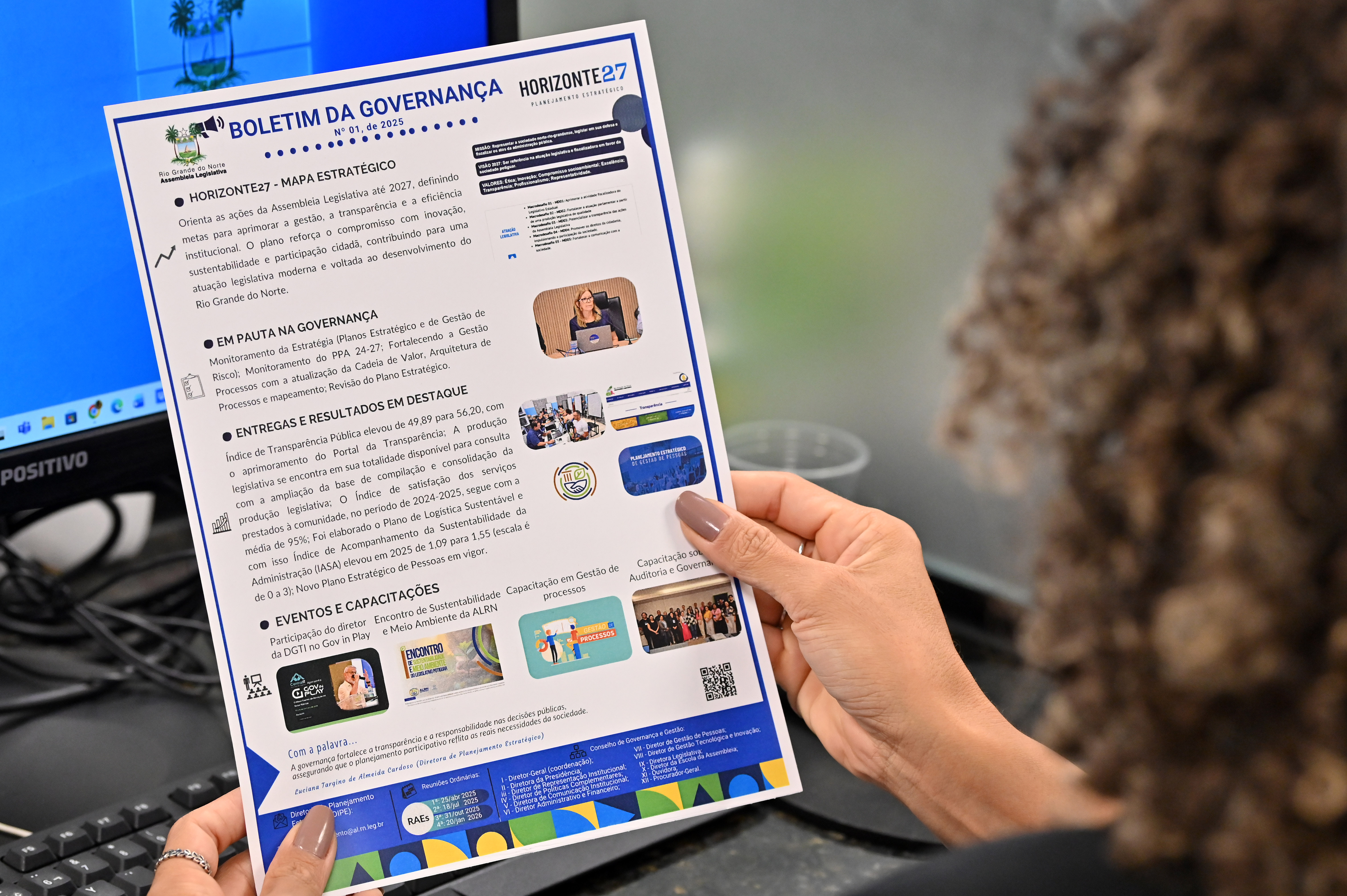 Entre os destaques do boletim estão o aumento do Índice de Transparência Pública, que passou de 49,89 para 56,20; a implementação do Plano de Logística Sustentável; e o novo Plano Estratégico de Pessoas. O material também registra os principais eventos e capacitações promovidos no período, como o Gov In Play, o Encontro de Sustentabilidade e Meio Ambiente da ALRN e os cursos sobre gestão de processos, auditoria e governança.