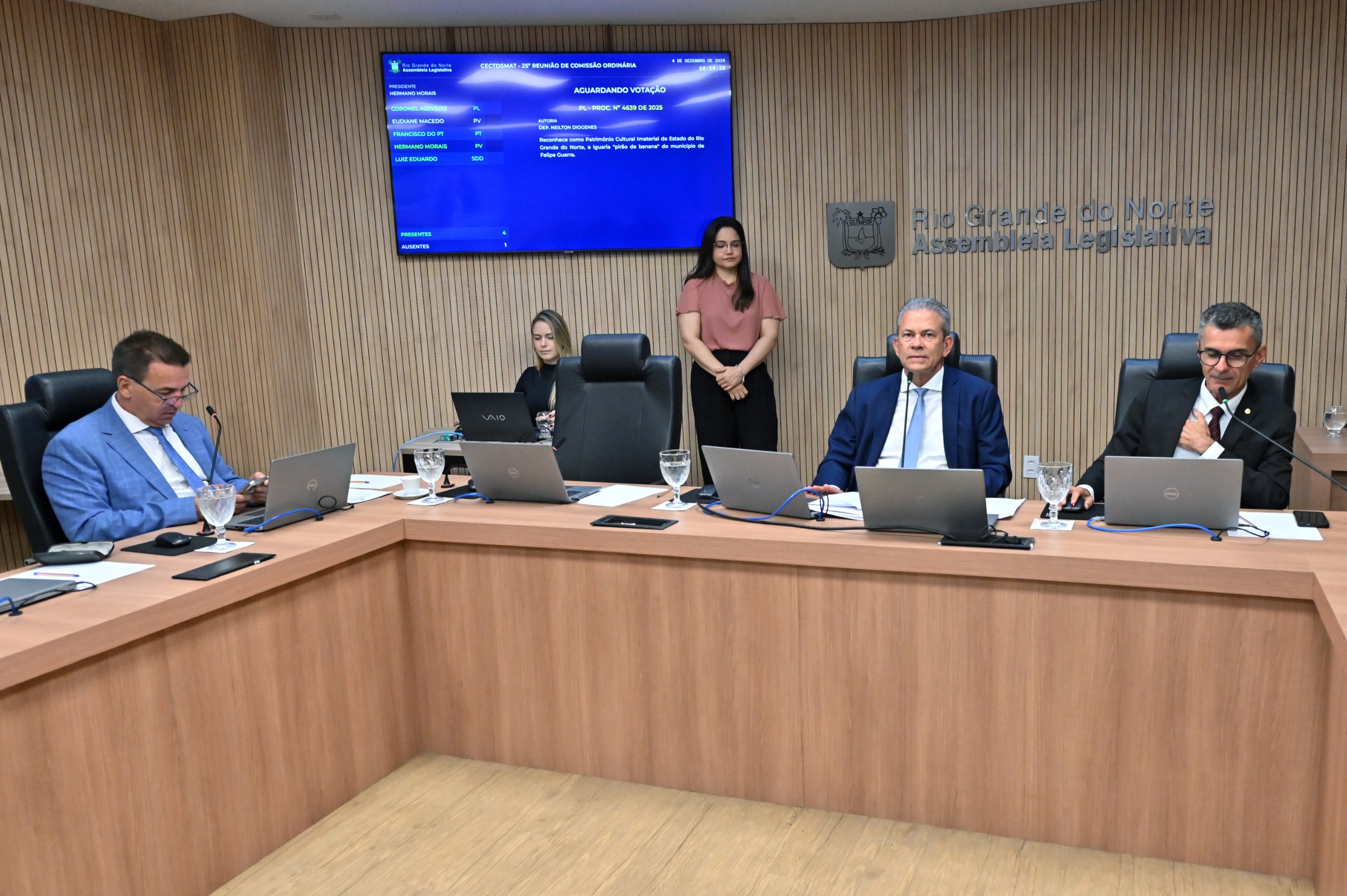 Durante a sua penúltima reunião ordinária do ano, nesta quinta-feira (4), a Comissão de Educação, Ciência e Tecnologia, Desenvolvimento Socioeconômico, Meio Ambiente e Turismo (CECTDSMAT) da Assembleia Legislativa do Rio Grande do Norte (ALRN) aprovou importantes projetos voltados à defesa da vida das mulheres, à proteção do patrimônio cultural e natural, ao reconhecimento de manifestações artísticas e à institucionalização de eventos no calendário oficial do Estado. O encontro contou com a presença dos deputados Hermano Morais (PV), Francisco do PT, Coronel Azevedo (PL) e Luiz Eduardo (SDD).