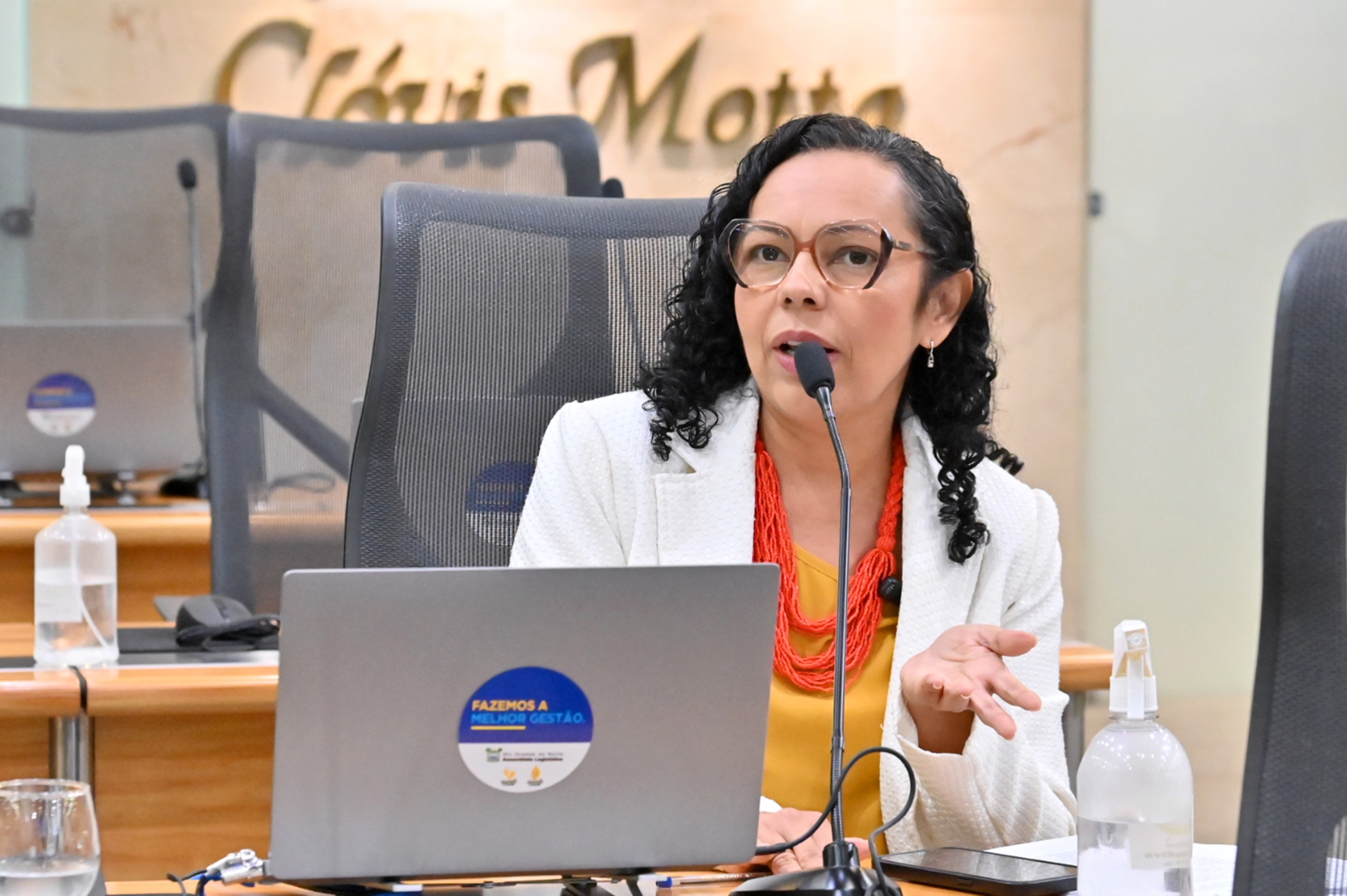 Durante o pronunciamento, a deputada também registrou proposições protocoladas por seu mandato, entre elas iniciativas de reconhecimento de patrimônios culturais, associações culturais e entidades de proteção animal.